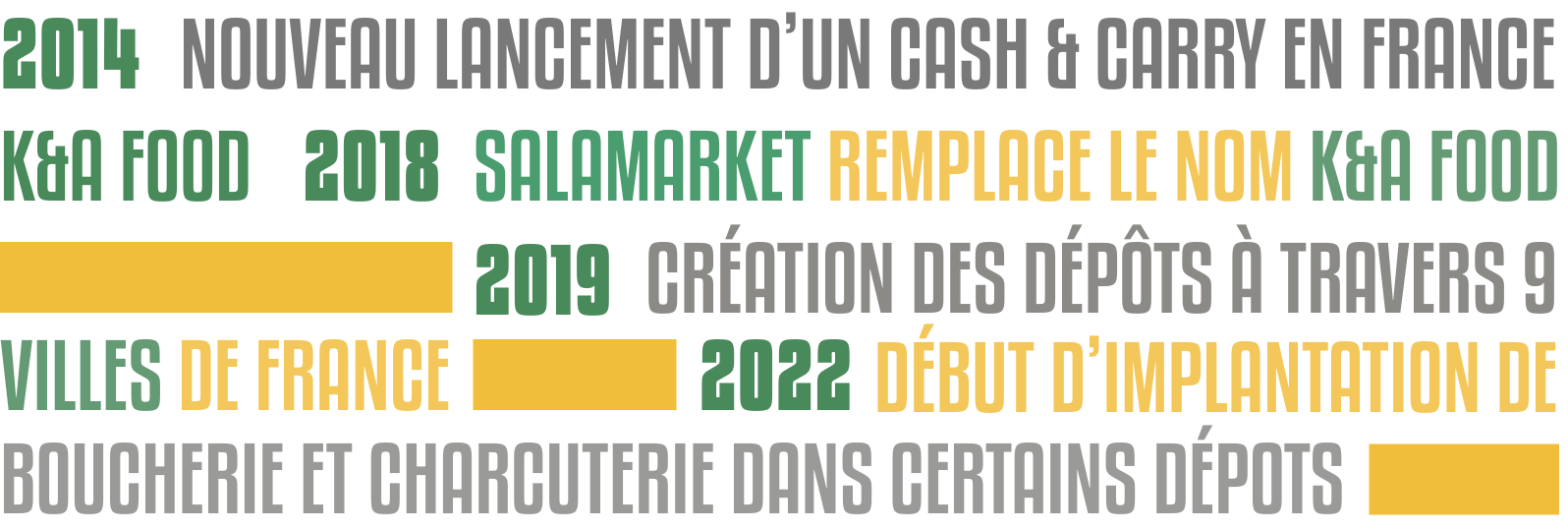 Confirmé dans le domaine de la distribution alimentaire halal, le groupe Salamarket déploie chaque jour ses efforts pour satisfaire une clientèle toujours plus importante à travers ses 9 dépôts implantés sur le territoire national. Un engagement et un intérêt sur le choix et la qualité des fait aujourd’hui de Salamarket un leader essentiel dans le marché.